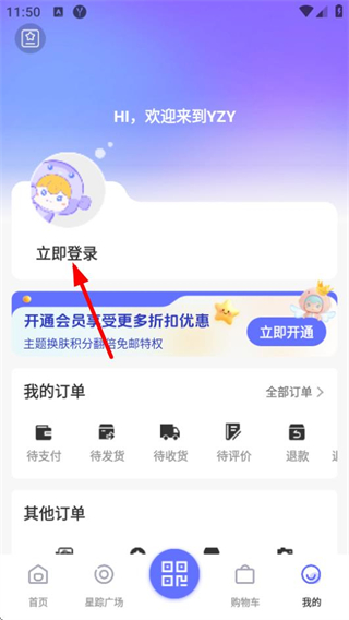 2、在個人中心頁面,點擊立即登錄按鈕,進入登錄頁面。