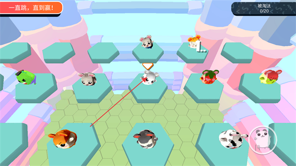1、按提示一直跳,直到贏,操控角色在平臺(tái)間跳躍,靠近其他角色完成集結(jié)。