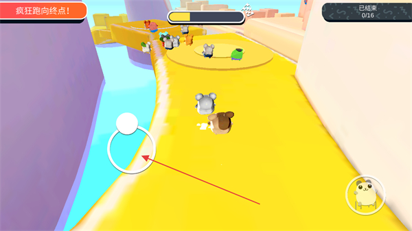 2、跟隨提示瘋狂跑向終點(diǎn),操控角色沿黃色路徑前進(jìn),收集沿途角色。