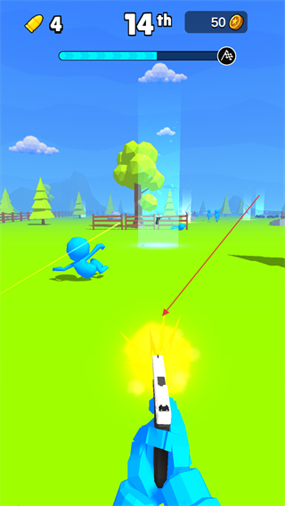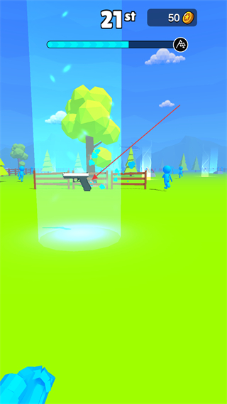 2、通過左右滑動屏幕控制火柴人的移動,拾取光圈內(nèi)的槍械擊倒其他火柴人。
