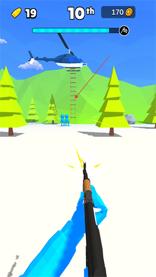 4、玩家需要做的就是阻止其他火柴人的前進,爭取在前幾名登上直升機進行逃生。