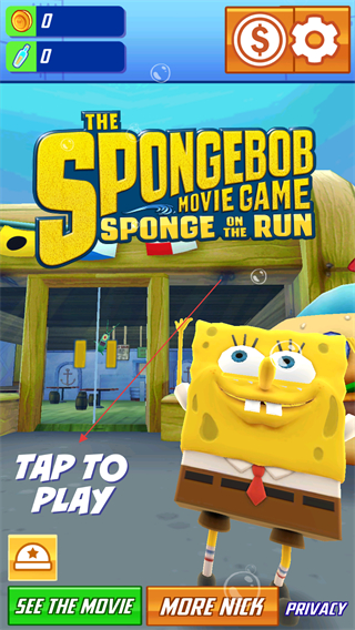 1、進(jìn)入海綿寶寶跑酷游戲主界面,點擊屏幕的空白區(qū)域開啟跑酷之旅。