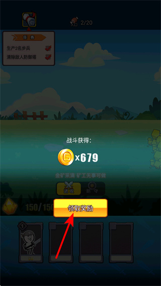 4、戰(zhàn)斗結(jié)束后,點(diǎn)擊領(lǐng)取獎(jiǎng)勵(lì)按鈕,可獲取本次戰(zhàn)斗的金幣獎(jiǎng)勵(lì)如679金幣,積累資源。