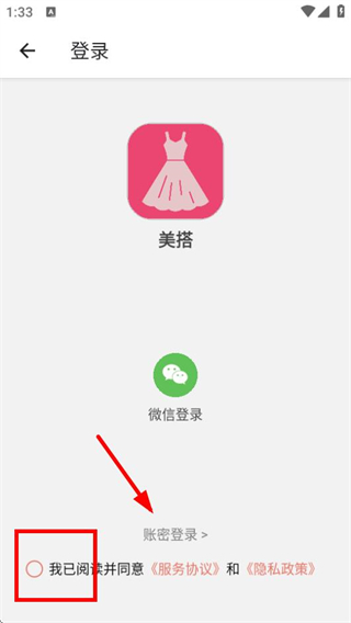 3、在登錄頁(yè)面,勾選協(xié)議后點(diǎn)擊賬密登錄選項(xiàng),進(jìn)入賬號(hào)密碼登錄界面。