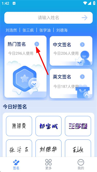 1、在墨韻藝術(shù)簽名首頁,點(diǎn)擊熱門簽名選項(xiàng),進(jìn)入熱門簽名列表頁面。