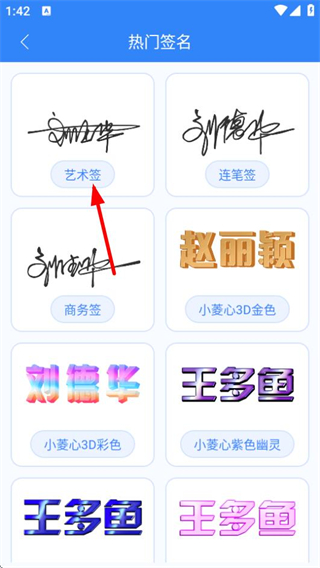 2、在熱門簽名列表中,選擇目標(biāo)簽名樣式,進(jìn)入簽名制作頁面。