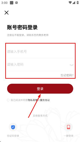 3、在密碼登錄頁面填寫手機號和密碼,勾選協(xié)議后,點擊登錄按鈕完成賬號登錄操作。