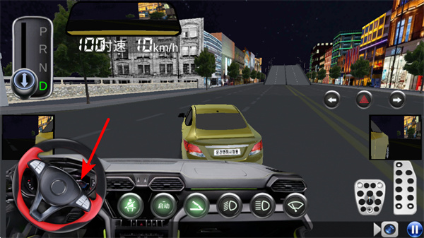 2、游戲中在駕駛準備階段,點擊界面右側(cè)的左轉(zhuǎn)向按鈕,開啟左轉(zhuǎn)向燈,為轉(zhuǎn)向操作做信號準備。