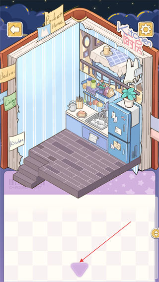 1、在下方的家具欄中,選擇合適的家具拖動(dòng)到魔法書(shū)中進(jìn)行安置。