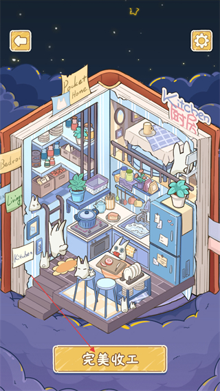 4、完成全部家具的布置后,可以點(diǎn)擊下方的完美收工按鈕開(kāi)啟下一個(gè)場(chǎng)景。