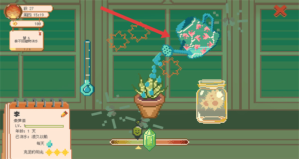 4、進入照料界面后,即可點擊灑水壺為植物澆水,完成澆水操作。