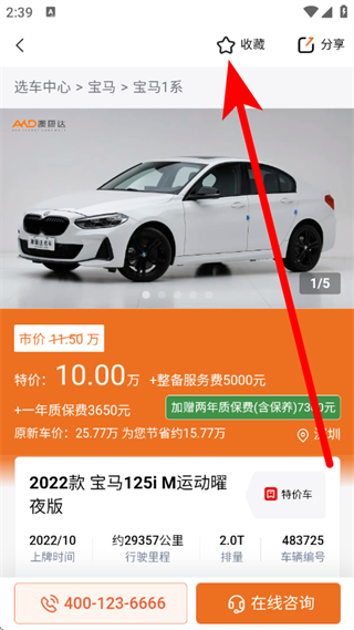 4、在車型詳情頁(yè),點(diǎn)擊右上角收藏,完成收藏該車型。