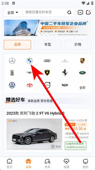 2、在買車頁(yè)面,點(diǎn)擊選擇目標(biāo)品牌,進(jìn)入品牌列表。