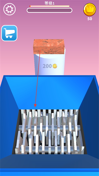 3、將磚塊拖入粉碎機,粉碎后可獲得對應200金幣獎勵。