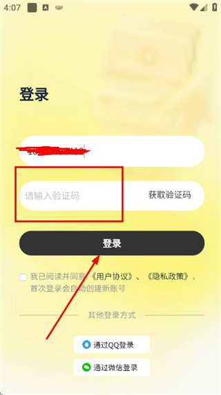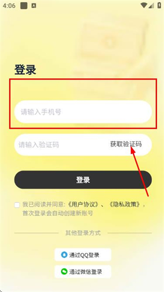 2、在登錄頁面填寫手機號,勾選協(xié)議后,點擊獲取驗證碼。