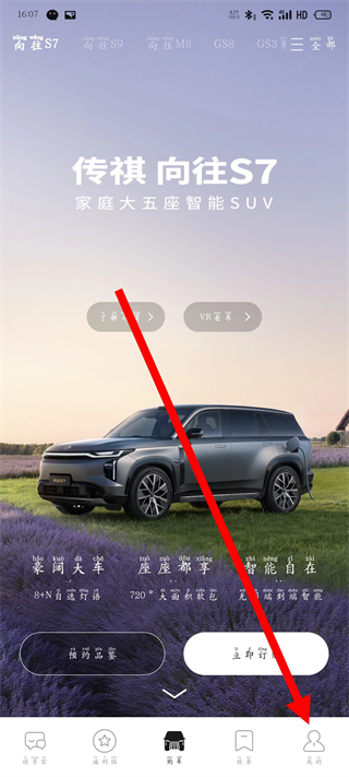1、打開廣汽傳祺,點(diǎn)擊底部我的,進(jìn)入我的頁面。