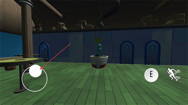 1、進(jìn)入游戲后將誕生在蟹堡王門口,滑動(dòng)左側(cè)屏幕控制角色進(jìn)入蟹堡王。