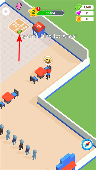 3、按照箭頭指引,消耗對(duì)應(yīng)資源解鎖District Area區(qū)域,拓展經(jīng)營(yíng)場(chǎng)地,為后續(xù)升級(jí)更多設(shè)施創(chuàng)造條件。