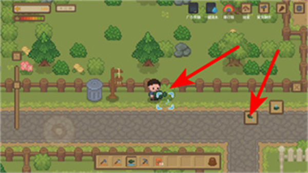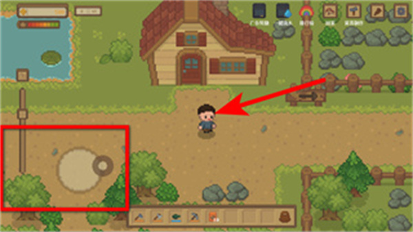 1、在小鎮(zhèn)初始界面,操控角色移動至指定區(qū)域,觸發(fā)場景切換。