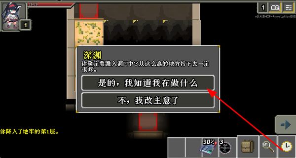 3、遇到洞口時,選擇對應(yīng)的確認(rèn)選項,跳入洞口進入下一層地牢,過程中會觸發(fā)劇情提示。