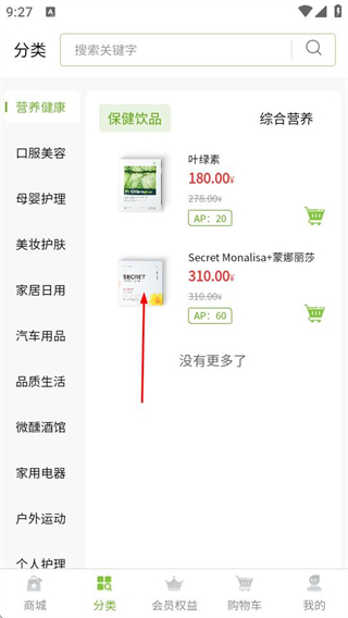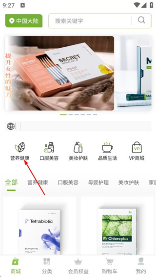 2、在商城頁面,點擊營養(yǎng)健康分類,進入營養(yǎng)健康的商品列表頁面。