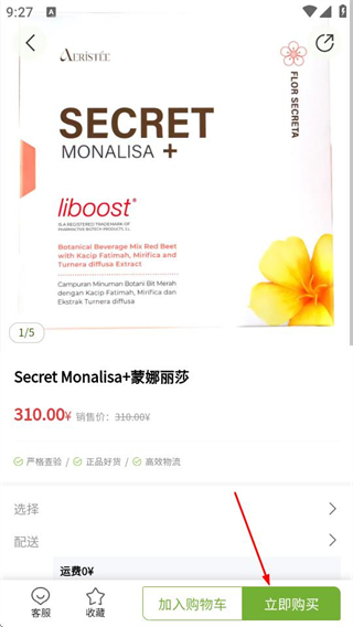 4、商品詳情頁面,點擊立即購買按鈕,即可完成該商品的購買操作。