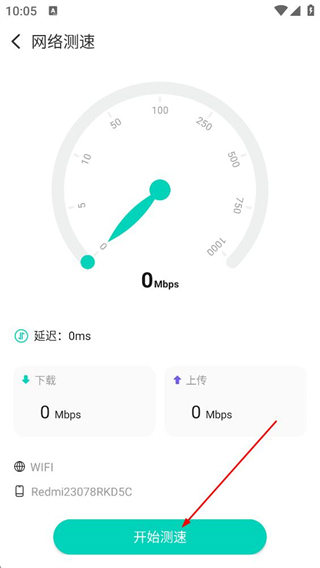 3、在網(wǎng)絡(luò)測速頁面,點擊開始測速按鈕,啟動網(wǎng)絡(luò)測速流程。