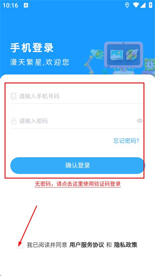 3、在手機(jī)登錄頁(yè)面,勾選協(xié)議后填寫(xiě)信息,點(diǎn)擊確認(rèn)登錄即可完成登錄。