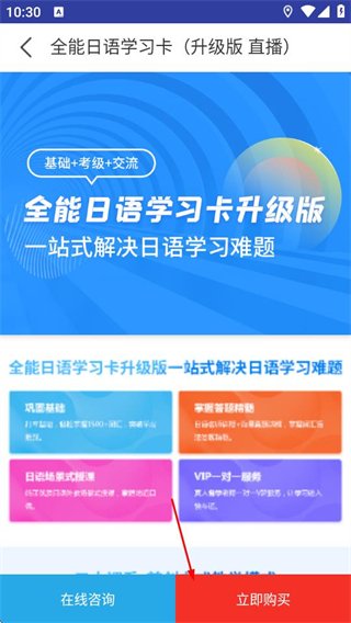 3、在課程詳情頁(yè)面,點(diǎn)擊立即購(gòu)買,進(jìn)入課程規(guī)格選擇頁(yè)面。
