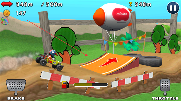 2、借助賽道坡道沖刺,提升行駛距離,向500m關(guān)卡目標(biāo)推進(jìn)。