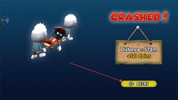 4、中途如果賽車墜毀,查看金幣獎(jiǎng)勵(lì)后,點(diǎn)擊RETRY重新挑戰(zhàn)。