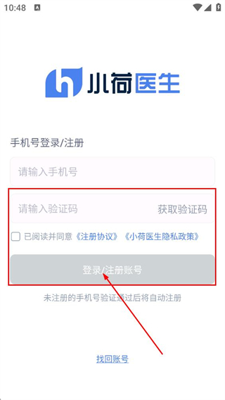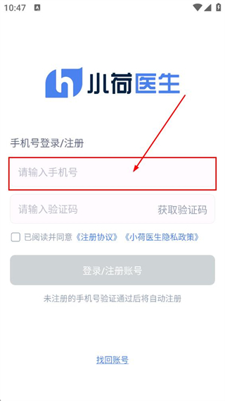 1、在個(gè)人信息保護(hù)指引彈窗中,點(diǎn)擊同意并繼續(xù),進(jìn)入小荷醫(yī)生登錄/注冊(cè)頁面。