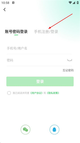 3、在登錄頁(yè)面,點(diǎn)擊手機(jī)注冊(cè)/登錄,切換至手機(jī)注冊(cè)/登錄界面。