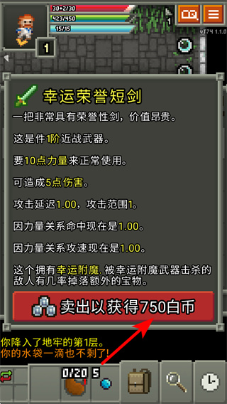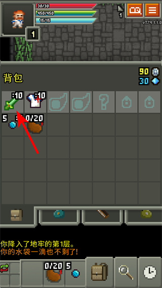 2、游戲中點(diǎn)擊背包內(nèi)的道具如武器,可將其裝備到角色身上,提升戰(zhàn)斗能力以應(yīng)對(duì)地牢敵人。