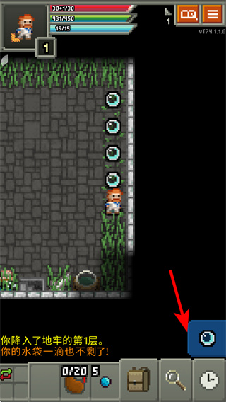 點(diǎn)擊屏幕即可控制角色移動(dòng)、攻擊敵人,道具可自動(dòng)收入包裹,搭配等待、搜尋、檢查等功能按鈕,完成地牢探索的操作。