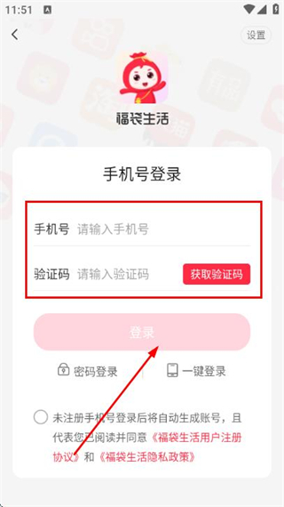 3、在手機(jī)號登錄頁面填寫手機(jī)號和驗(yàn)證碼,勾選協(xié)議后,點(diǎn)擊登錄完成賬號登錄操作。