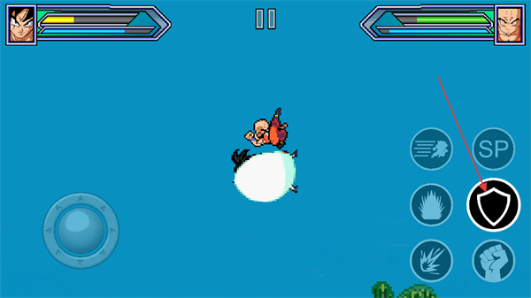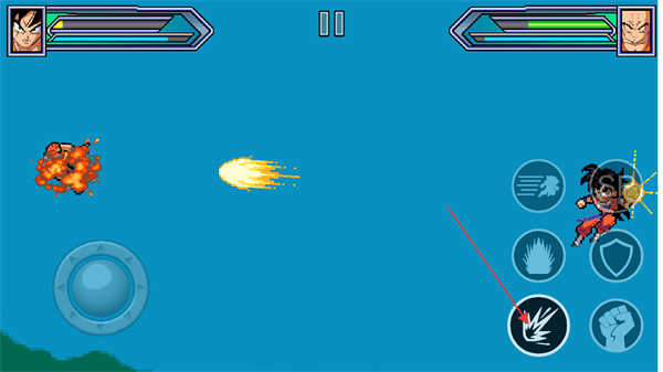 4、點(diǎn)擊右下角的攻擊按鈕可以發(fā)射氣波進(jìn)行攻擊,可以隔斷對手的進(jìn)攻扣除血量。