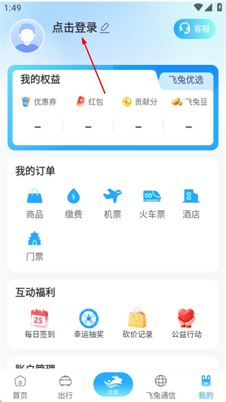 1、在飛兔商聯(lián)的首頁(yè),點(diǎn)擊底部的我的選項(xiàng),進(jìn)入個(gè)人中心頁(yè)面。