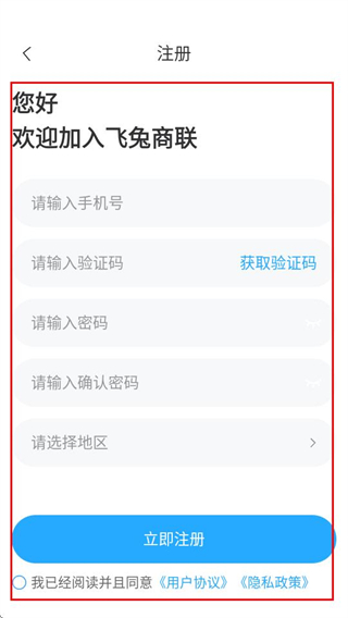 4、在注冊(cè)頁(yè)面,填寫信息,勾選協(xié)議后點(diǎn)擊立即注冊(cè)完成賬號(hào)注冊(cè)。