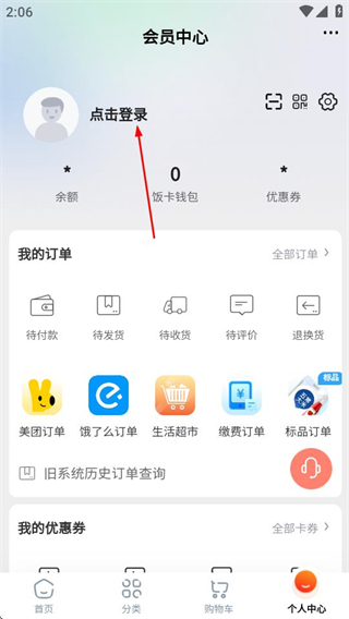 2、在會(huì)員中心頁(yè)面,點(diǎn)擊點(diǎn)擊登錄區(qū)域,進(jìn)入登錄信息填寫頁(yè)面。