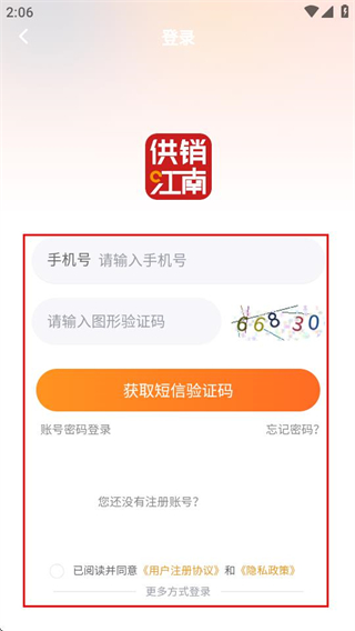 3、在登錄頁(yè)面,填寫信息勾選協(xié)議,完成登錄操作。