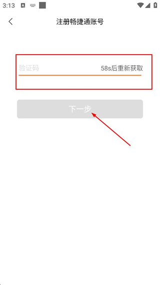 3、在注冊(cè)頁(yè)面,輸入收到的驗(yàn)證碼后,點(diǎn)擊下一步,繼續(xù)完成賬號(hào)注冊(cè)流程。