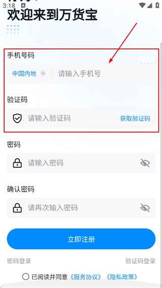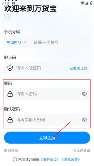 5、在注冊頁面,輸入密碼-確認(rèn)密碼,點擊立即注冊,完成賬號注冊操作。