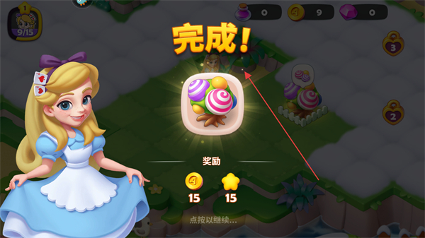 4、任務(wù)完成后,領(lǐng)取金幣、星星等獎勵,點擊繼續(xù)進(jìn)入下一個任務(wù)。