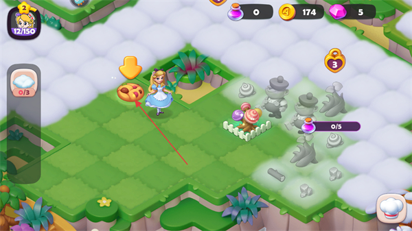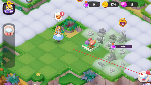 3、使用道具如紫色瓶子,消耗3個道具清除場景中的迷霧,解鎖新區(qū)域。