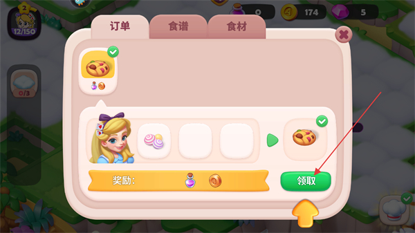 1、查看訂單任務(wù)需提交指定糖果,點擊訂單界面的領(lǐng)取,獲取任務(wù)道具。