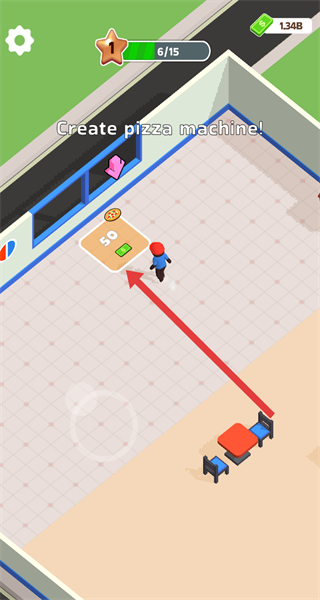 2、移動角色到指定位置,消耗對應鈔票創(chuàng)建披薩機器,解鎖披薩制作功能。