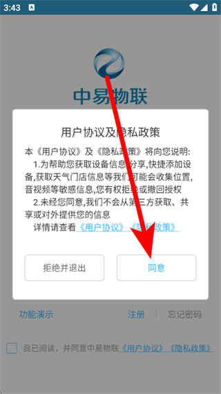 1、打開智慧漁業(yè),在隱私政策彈窗中,點(diǎn)擊同意。