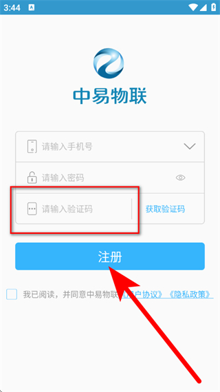 4、輸入驗(yàn)證碼,勾選協(xié)議后,點(diǎn)擊注冊,完成注冊。