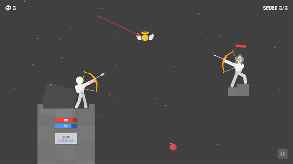 4、射中場(chǎng)上出現(xiàn)的帶翅膀的黃色蘋(píng)果可以恢復(fù)射手的全部屬性值。